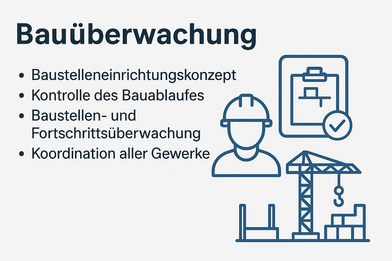 Unsere Bauüberwachung stellt sicher, dass Ihr Projekt effizient, sicher und gemäß Planung umgesetzt wird. Wir entwickeln ein durchdachtes Baustelleneinrichtungskonzept, das optimale Abläufe auf der Baustelle ermöglicht. Durch die kontinuierliche Kontrolle des Bauablaufes sowie eine präzise Baustellen- und Fortschrittsüberwachung behalten wir Qualität, Termine und Sicherheit jederzeit im Blick.